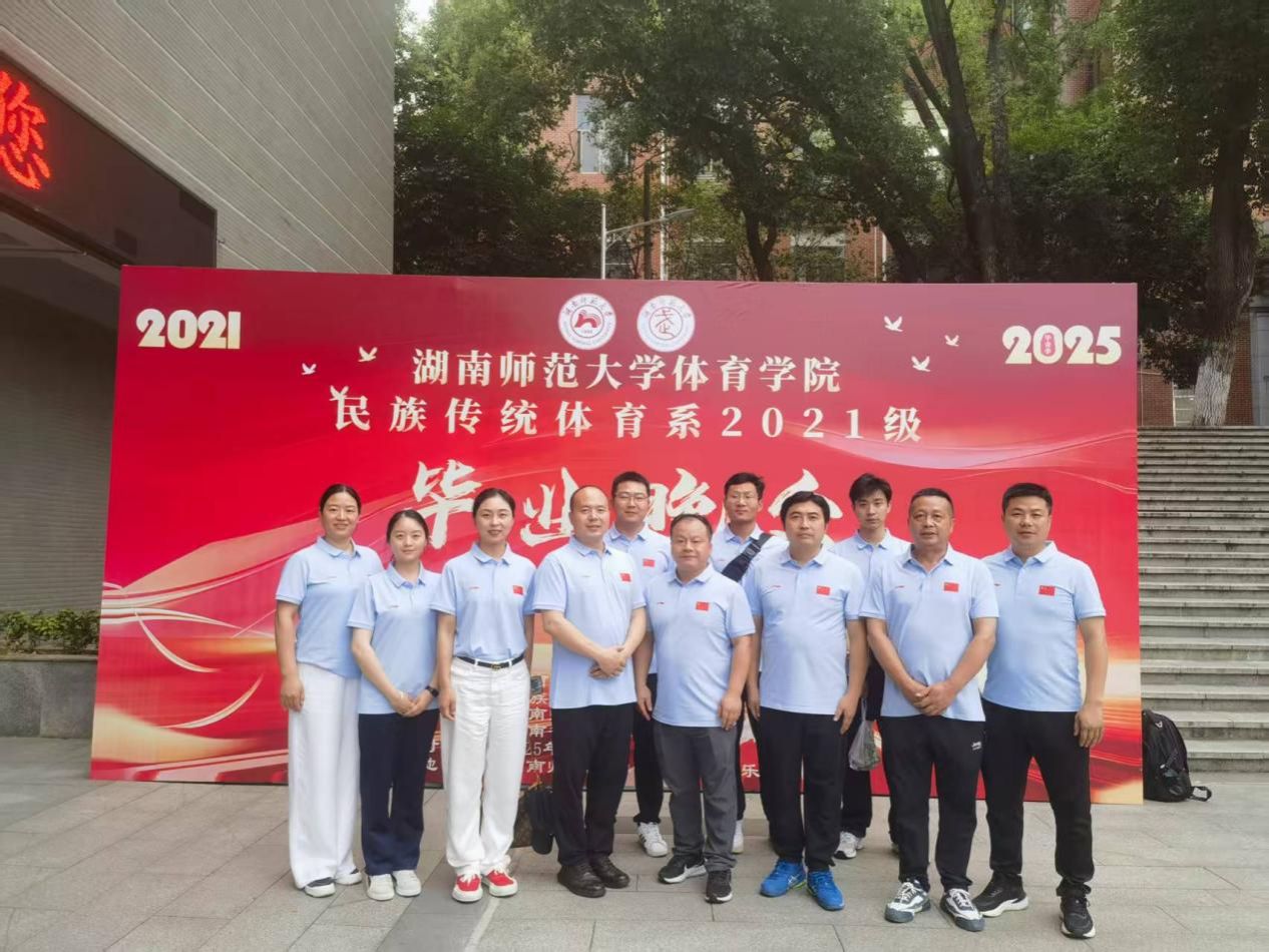5月30日,体育学院院长周惠新教授率武体田教研室一行15人赴长沙湖南师范大学体育学院开展学习交流活动,围绕专业建设、人才培养、师资共育等核心议题展开深度研讨。湖南师范大学博导张继生教授、民族传统体育教研室主任谢晓清博士热情接待,双方共同签署专业共建合作备忘录,并观摩毕业晚会深化文化交流,为推进体育教育高质量发展注入新动能。