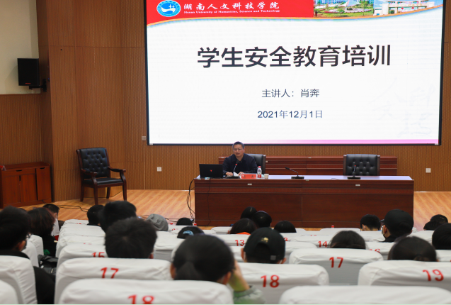 12月1日晚,由武装部保卫处主办的“学生安全教育培训”讲座在匠城楼报告厅举行。副处长肖奔为KY官网2021级全体信息员进行了安全教育培训讲座。