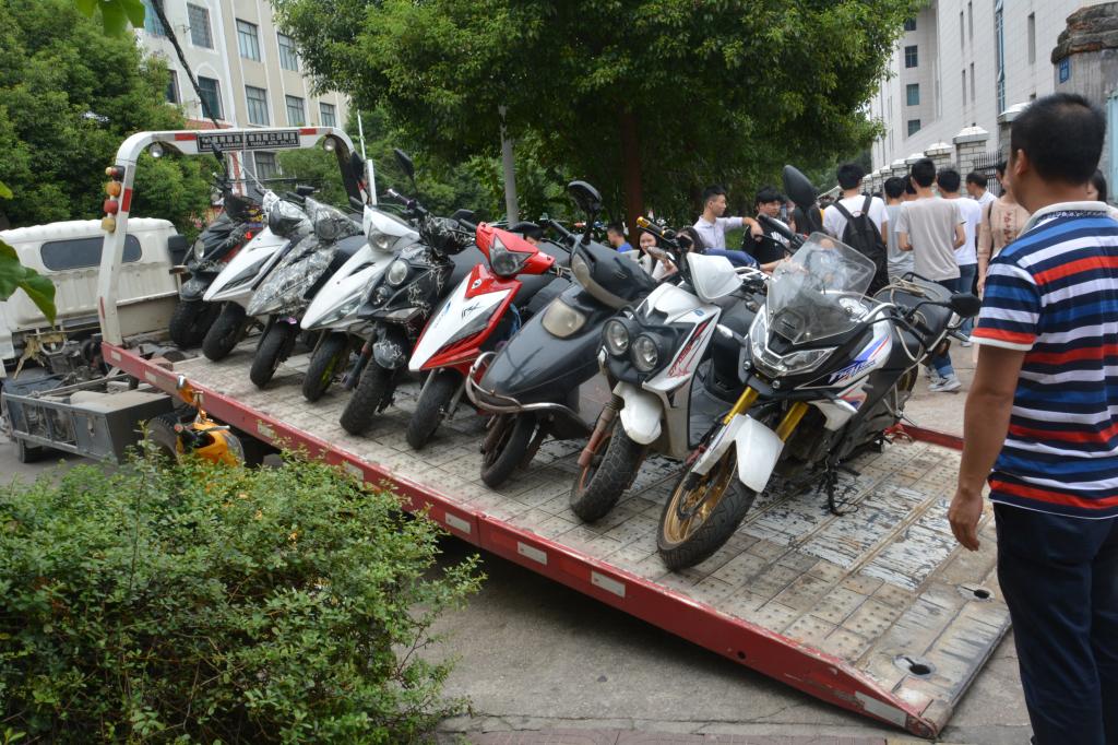 开学伊始,为了给广大师生营造一个更加良好的生活、学习和工作的环境,给即将到来的迎新工作营造一个更加温馨宜人的校园环境,结合KY官网参评全国文明校园的工作,9月4号下午和9月5号上午在交警的支持和参与下保卫处治安科的全体人员做到了提前上岗,文明值勤;收缴了在马路上和人行道乱停乱放摩托车共60余台,使学校的周边环境得到了进一步的优化。(苏继富 供稿)