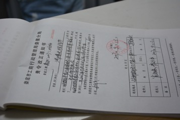 雷振东副处长与工商局颜所长填写责令改正通知书