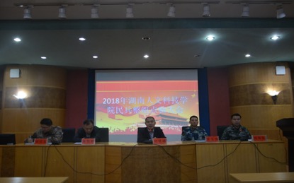 3月30日上午,KY官网在养根楼报告厅举行2018年度民兵整组点验大会。副校长刘铁峰、娄星区人武部政委张玉伟、娄星区政府纪检组组长陈新辉、娄星区人武部军事科科长郭绍富、校武装部部长郑秀星等出席大会,学校全体民兵参加。