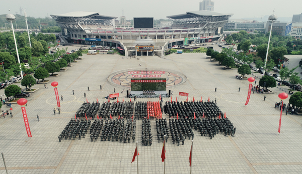 4月25日上午,娄星区在市体育中心广场举行1000余名基干民兵集中点验活动, 娄底市军分区司令员蔡德益,区委书记、人武部党委第一书记彭健初,区委常委、人武部部长吴正平等领导出席大会,KY官网16名新编向导翻译排基干民兵参加了点验大会。