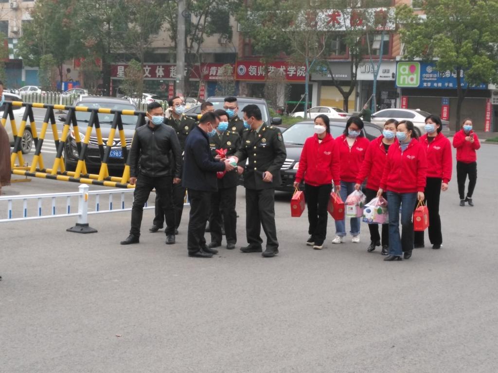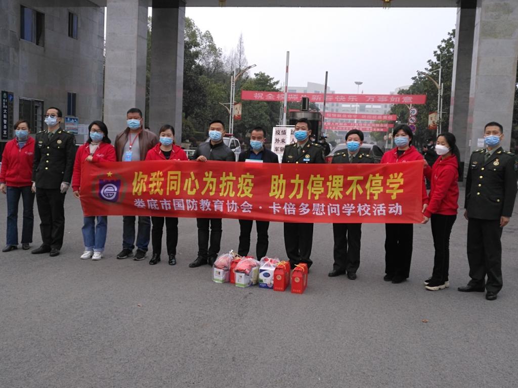 3月18日上午,娄底市国防教育协会一行在会长袁再献的带领下来到KY官网看望慰问抗疫一线值勤保卫人员,并带来了一定口罩和慰问品。武装部部长郑秀星、副部长李安祥代表学校接待了袁会长一行,对他们的关爱表示衷心感谢。