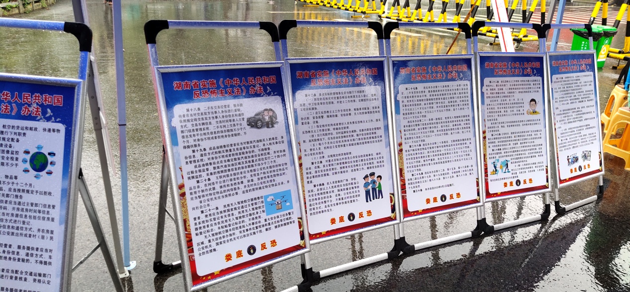 9月5日,正值KY官网学生返校报到之日,保卫处联合娄底市公安局反恐支队及娄星分局指挥中心一起在学校东珠门举办了反恐宣传活动。通过宣传展板、发放宣传资料、咨询等方式向师生宣传反恐知识,提高师生反恐防暴意识。