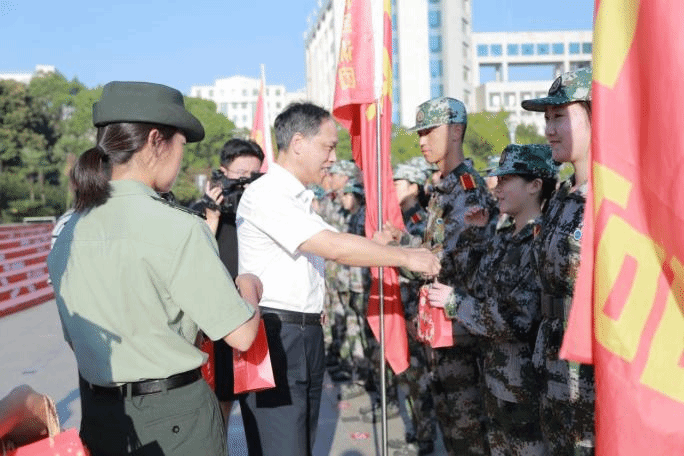 铁铭校长代表学校祝新生们中秋快乐。他深情回顾:“......还记得开学的第一天,我们相聚在海园,你们‘强国有我,请党放心’的青春誓言仍旧回荡在耳畔,每一个人文学子都有自已的使命”。他勉励大家:“......中国共产党的一百年,是在苦难中铸就辉煌、探索中收获成长、失误中拔乱反正、奋斗中赢得未来的一百年。我们每一位青年,生逢盛世,肩负使命,更应报效祖国。‘行百里者半九十’,军训日程尽管过半,但是考验和磨砺还在等待着大家。希望同学们能够借此契机磨炼心智、强健体魄,做一位真正的战士”。他祝愿每一位同学“眼有星辰大海、心中繁花似锦、肩负时代重任、书写青春华章”。