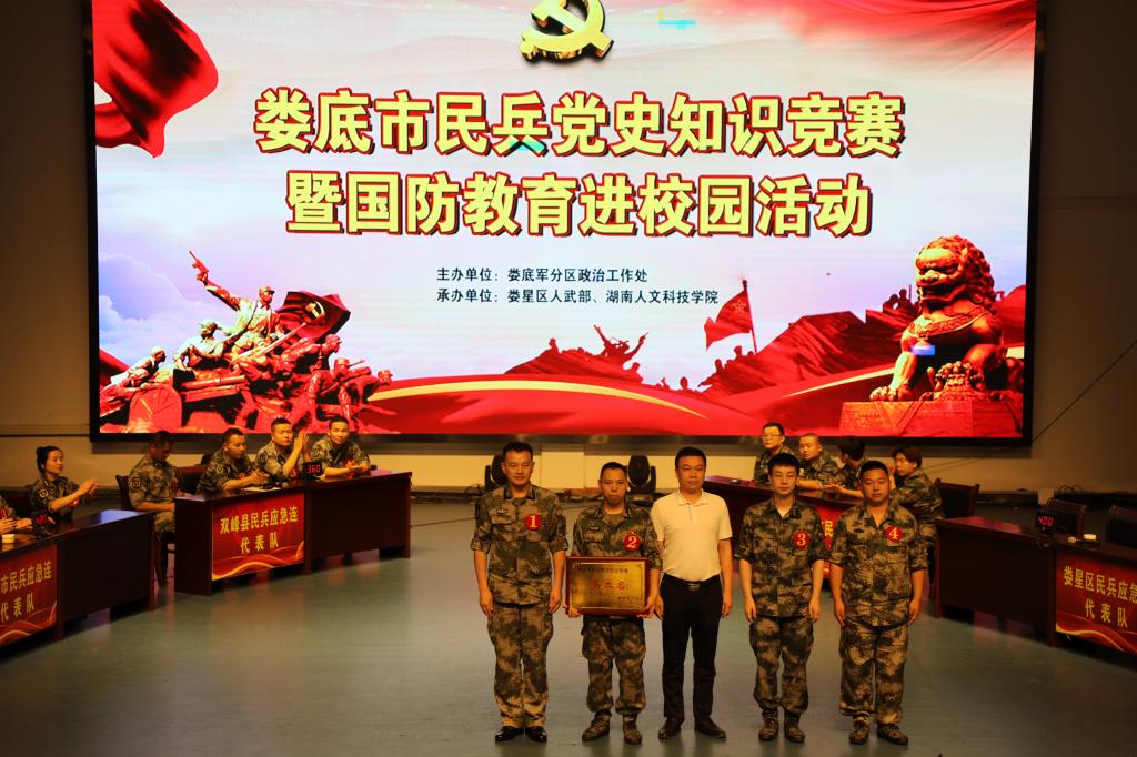 为迎接中国共产党成立100周年,6月16日上午,娄底市民兵党史知识竞赛暨国防教育进校园活动在学校逸夫楼音乐厅举行。本次活动由娄底军分区政治工作处主办,娄星区人武部和KY官网联合承办,来自娄底6支县市区代表队参加民兵知识竞赛,KY官网200余学生参加活动。学校党委委员、副校长曹鑫、武装部部长魏彦煜、副部长肖奔出席。
