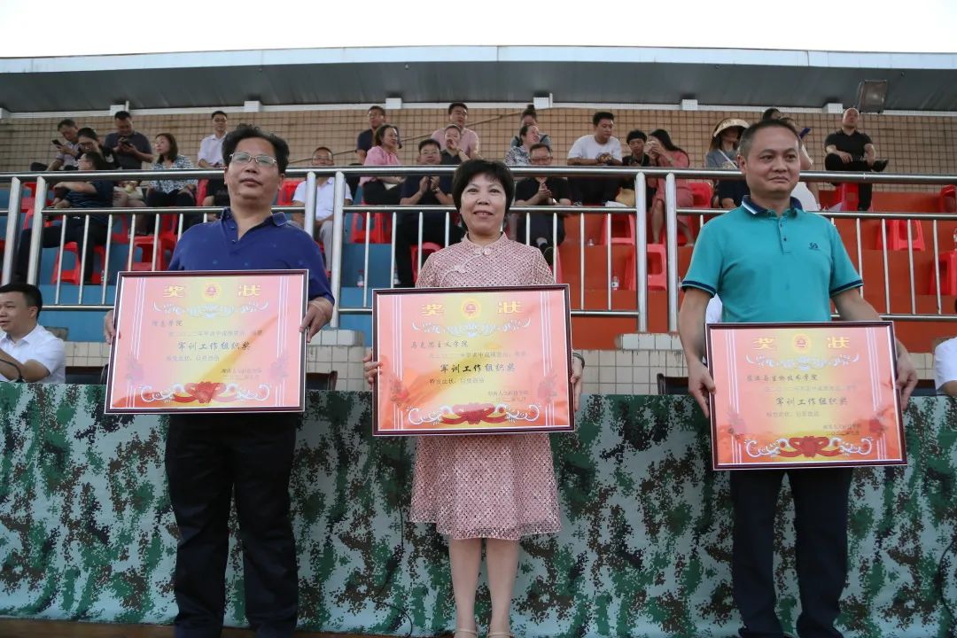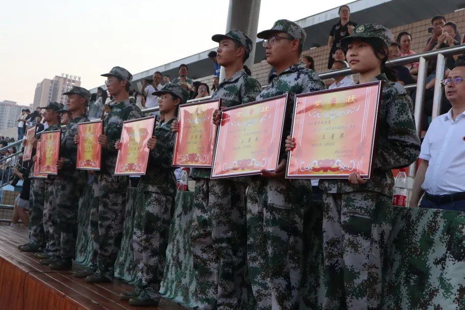 会上,刘建勋宣读了军训表彰决定。主席台就坐领导为先进集体代表进行颁奖。刘和云为教导大队颁发锦旗,对全体教官的辛苦付出表示由衷的感谢。