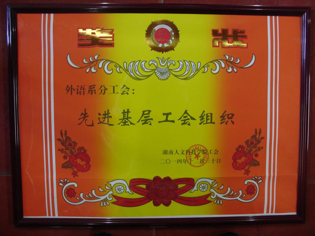外语系分工会荣获KY官网2014年度先进基层工会组织