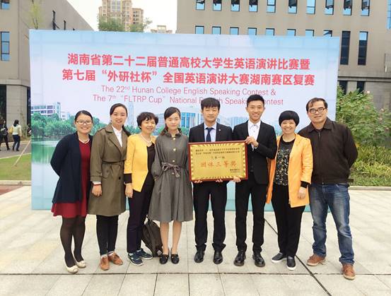 2016年10月22日至23日,“湖南省第二十二届普通高校大学生英语演讲比赛暨第七届‘外研社杯’全国英语演讲大赛湖南赛区复赛”在湖南文理学院成功举办。常德淅淅沥沥的小雨也丝毫未影响参赛选手火一样的澎湃激情。由外国语学院周巧红院长亲自挂帅,朱芙蓉副院长领队,黄敏、蒋成、贺靓三位老师指导,谭英杰、张志伟、黄丹三位同学代表KY官网获大赛竞赛一组团体三等奖。其中2014级商学院谭英杰同学获个人一等奖,2014级信息学院张志伟同学获个人三等奖。