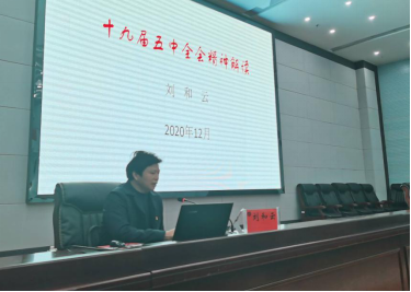 刘和云从十九届五中全会的主要内容及重要意义、在全面建成小康社会中取得的决定性成就、目前面临的机遇与挑战、到2035年要实现的远景目标、十四五时期经济发展的六方面主要目标及实现奋斗目标的12个方面具体措施六个方面向大家解读了十九届五中全会精神。