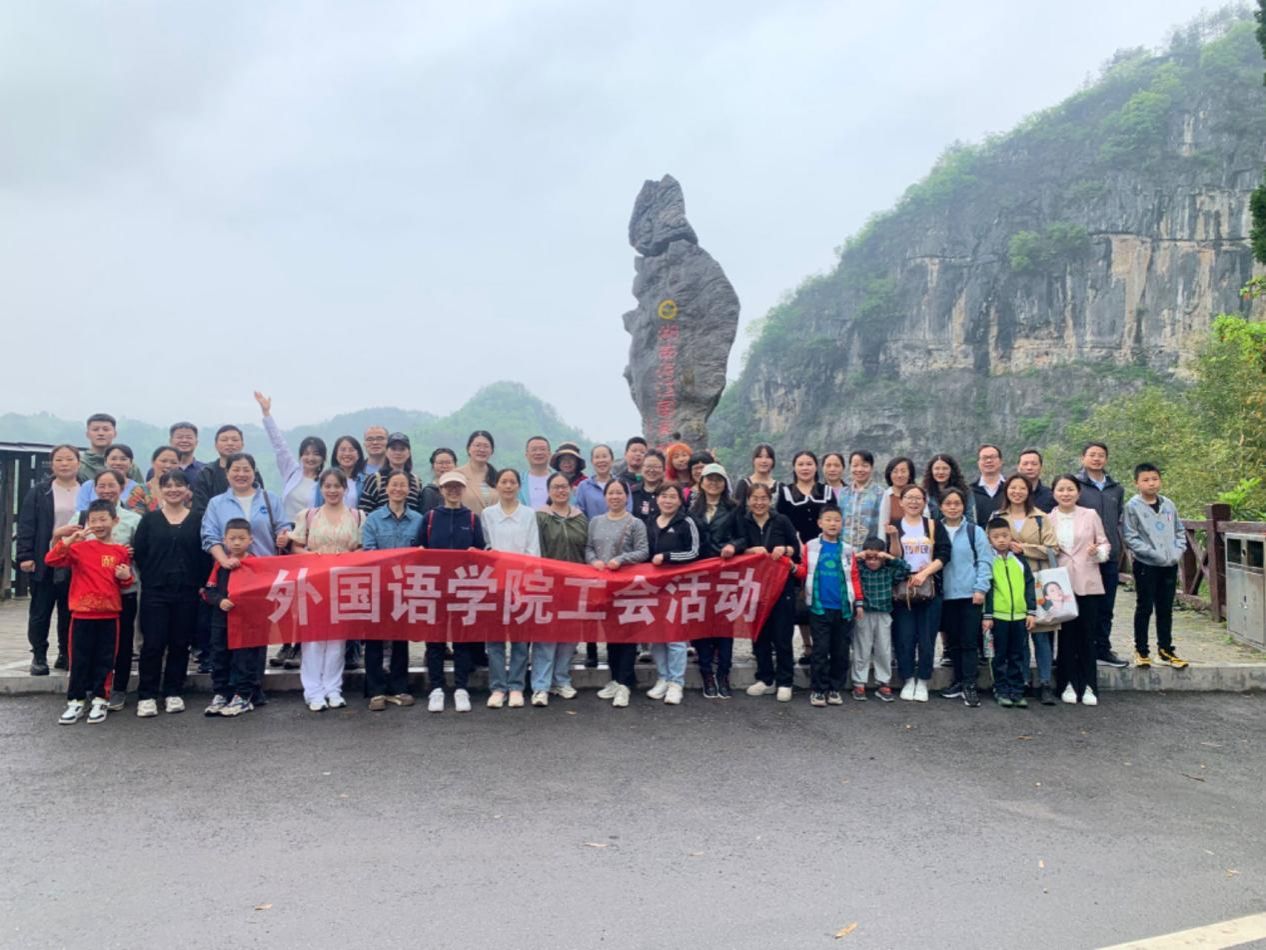 为营造健康积极的工作环境,丰富全院教职工的精神文化生活。利用周末时段,2024年4月14日外国语学院分工会组织全体教职工前往涟源市湄江地质公园,开展了“亲近自然、劳逸结合、强健体魄、增进凝聚”的春游活动。