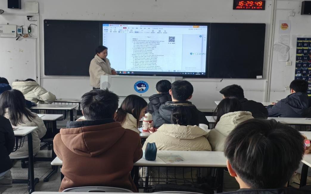 讲解真题时,吴老师妙语连珠。她不时提出问题,如“大家觉得这道题的关键信息在哪里?”“根据刚才听到的内容,我们如何排除错误选项呢?”这些问题像一把把钥匙,引导着学生深入思考,积极探索解题思路。学生纷纷举手发言,各抒己见,课堂气氛十分活跃。