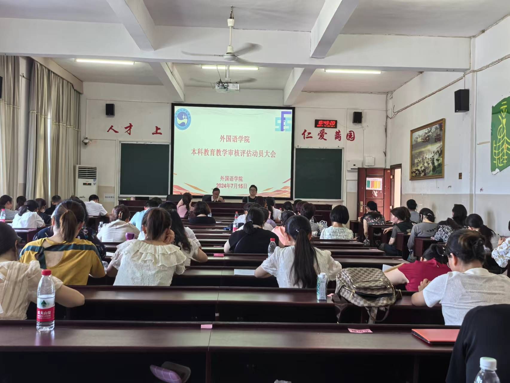 为确保即将到来的本科教育教学审核评估工作顺利进行,外国语学院于7月15日上午在播馨楼406召开了本科教育教学审核评估研讨会。院领导、教务办、行政办、学工办、全院教师参加此次会议。