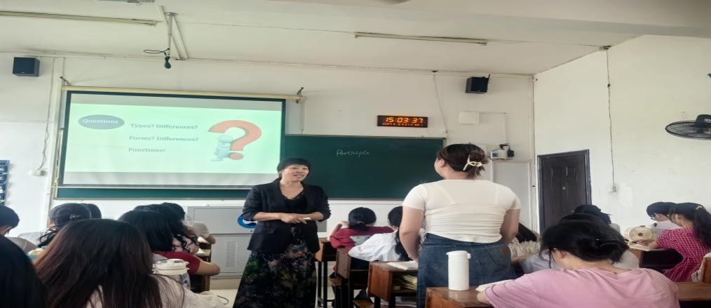为响应学校“教学质量提升月”号召,充分发挥骨干教师在教学中的引领示范作用,5月27日下午,商务英语教研室邓梦林老师就分词的形式、功能和运用在播馨楼411为全院教师上了一堂英语语法示范课。