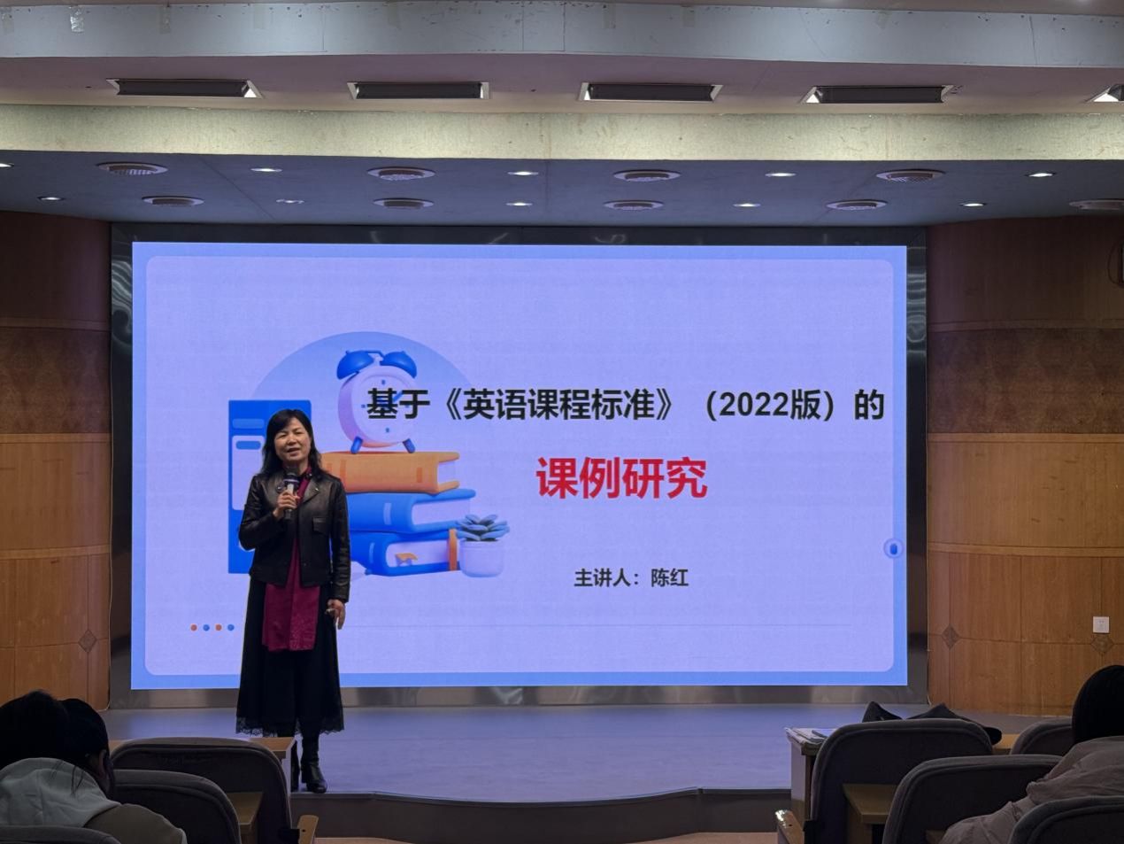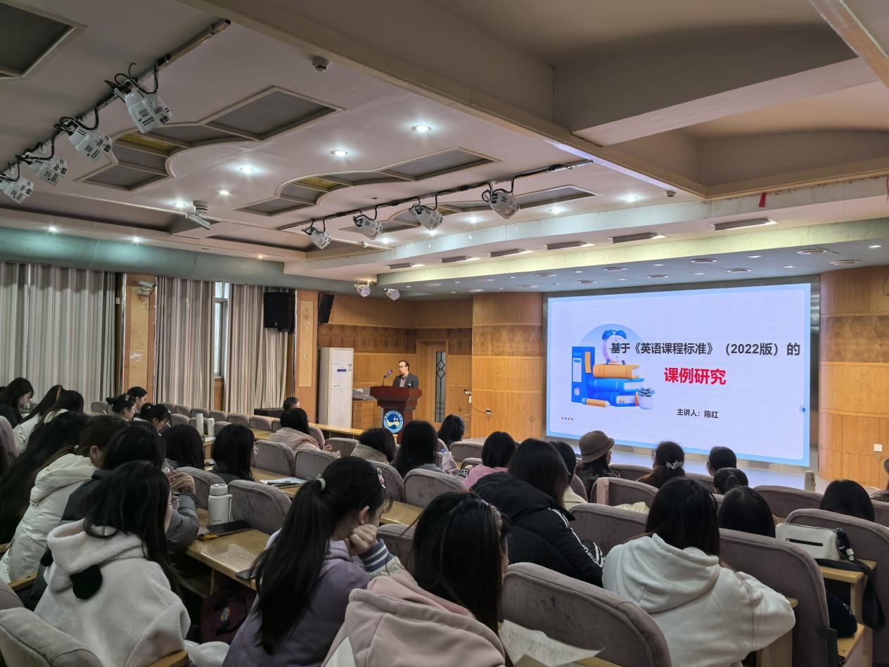 11月22日下午,英语专业教育见习主题讲座在养根楼报告厅举行。湖南科技大学教授、原湘潭市原湘潭市教科院英语教研员陈红老师做了主题为“基于义务教育《英语课程标准》(2022版)的课例研究”的讲座。本次讲座由外国语学院副院长刘晓东主持,英语专业教研室的老师们也积极参与了本次讲座。讲座期间,陈老师分享了3个关键词,“立德树人、五育并举、问题情境”,并对《英语课程标准》进行了深刻剖析。她用课例研究详细诠释了新课程标准理念,对新课程标准的具体要求做了仔细解读,同学们听得认真,收获满满。