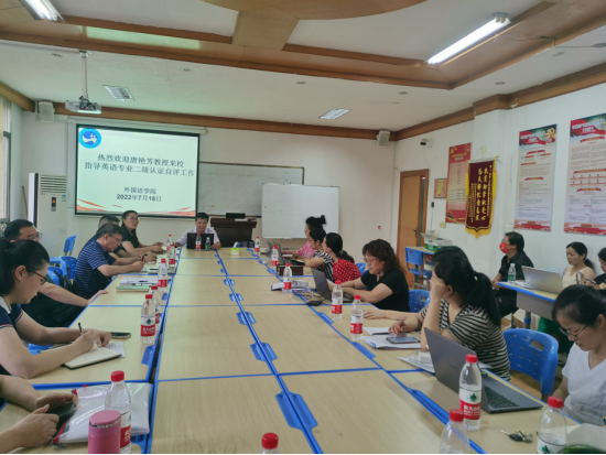 2022年7月18日,嘉兴学院外国语学院唐艳芳院长应邀来KY官网指导英语专业认证自评工作。参加会议的有质量监督规划处李国强副处长、外国语学院全体院领导、英语专业二级认证组全体教师。