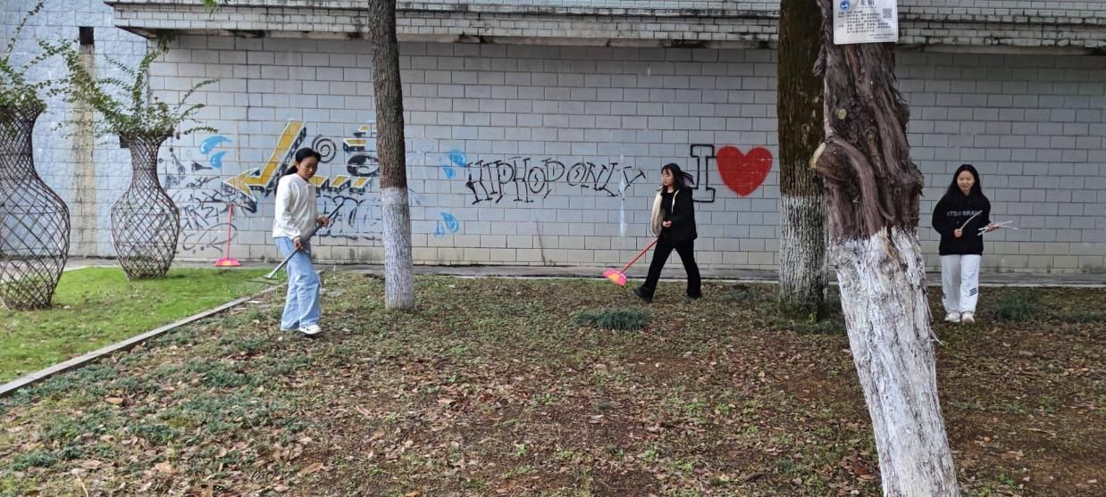 2023年11月14日,外国语学院全体同学于播馨楼和百全楼附近进行守望花田活动。