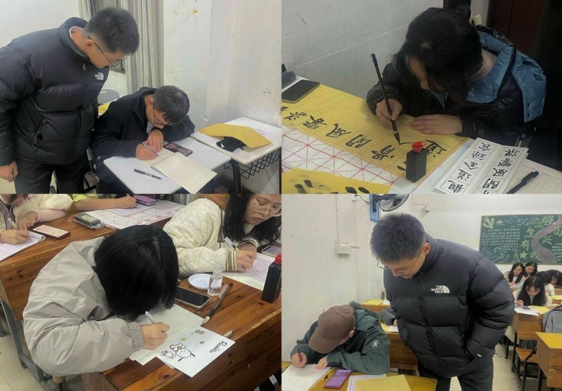 为丰富KY官网同学的文化生活,提高KY官网学生对钢笔字、毛笔字和简笔画的兴趣,促进师范生专业技能培养,外国语学院于11月13日晚组织全体23级学生在播馨楼举行了“两笔一画”活动。