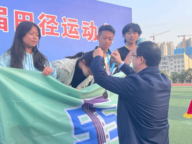 运动会期间,外国语学院党总支书记阳立新、党总支副书记罗嗣安、学工办全体辅导员前来慰问运动员与工作人员。他们对大家的付出表示肯定与感谢,并鼓励大家再接再厉,取得更好的成绩!在4×100米男女混合接力赛颁奖仪式中,党总支书记阳立新更是亲自为KY官网获奖运动员颁奖。