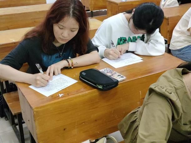 为帮助2023级新生全面认识自我,明确学习目标,了解大学生涯,2024年4月15日晚,外国语学院于播馨楼开展“活出自我,圆梦青春”活动,学院2023级全体新生参加,同学们跨越时光,寄语青春,畅想毕业时的自己,写一封信寄给四年后美好的自己。