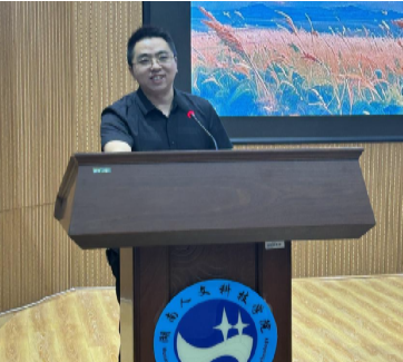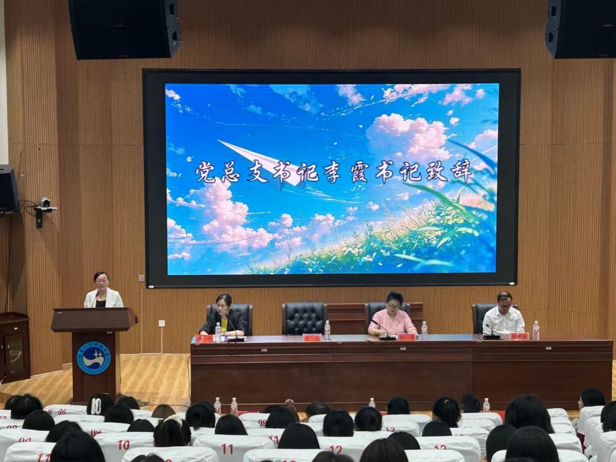 党总支书记李霞致欢迎辞,代表外国语学院全体师生向新同学们表示热烈的欢迎和诚挚的祝贺,并以“以奋斗致青春 成为最好的自己”为主题给新生们上了第一堂思政课。