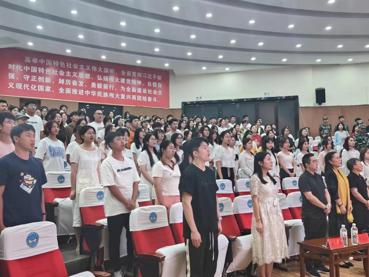 在暖场环节,全体新生班主任表演了节目歌曲串烧,用他们独特而热情的方式欢迎新同学。开学典礼在庄严的国歌声中拉开帷幕。外国语学院2024年新生开学典礼暨“新生第一课”正式开始。