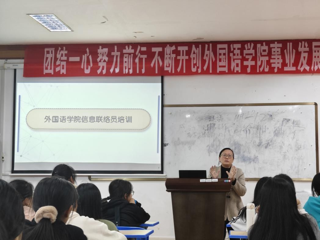 为提升信息联络员的建设和管理工作,强化心理委员和信息联络员的责任意识,10月22日下午,外国语学院在播馨楼301组织开展2024级信息联络员会议。外国语学院党总支书记李霞,学工办主任朱倩,心育专干饶洁,以及24级各班班干、心理委员和信息联络员共同参会。