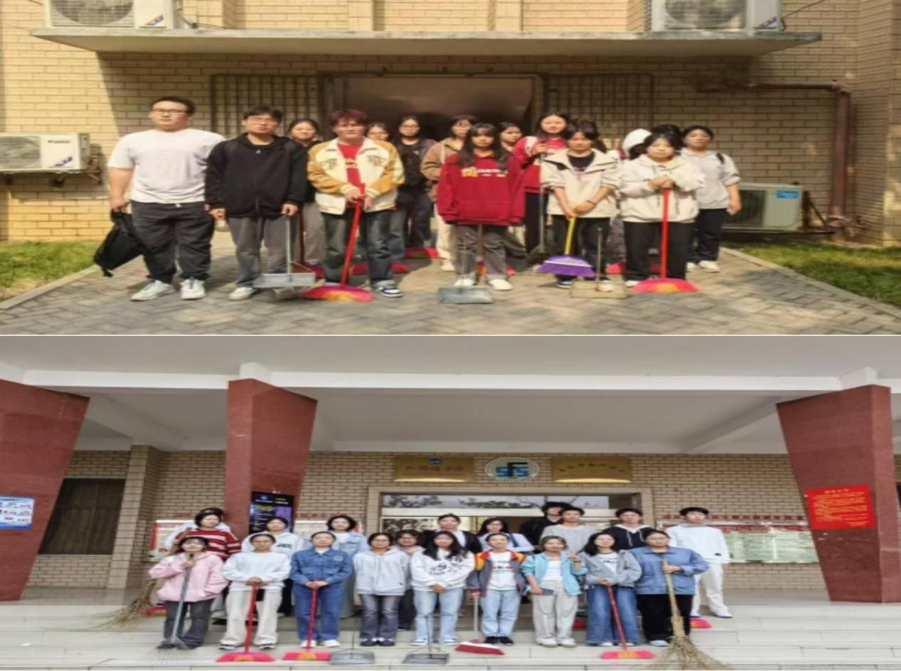 2024年10月15日,外国语学院学生会青工部在校内划分出三大劳动区域,各青工部干事联合班级卫生委员以班级为单位参与片区内守望花田活动。同学们从中午12:40开始,在播馨楼存放清扫工具处有序领取工具后前往各自劳动区域进行清扫。