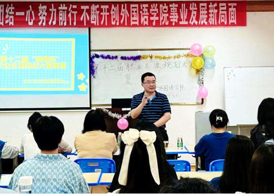 2023年5月5日晚,外国语学院第十二届“瑞奇杯”大学生职业生涯规划大赛复赛在播馨楼301教室落下帷幕。本次复赛由外国语学院团学会创新创业部组织,由外国语学院党总支书记阳立新、党总支副书记罗嗣安、全体辅导员老师以及商学院学生代表出席担任评委。