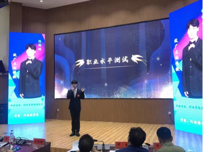 在决赛现场上,杨锦琳同学以“以师之名,育大国工匠”为主题汇报自己的职业生涯规划。他通过分析自己的职业兴趣与能力、SWOT分析自身人格、周围环境的因素等方面全面认识自己,并定位自己的职业岗位为职业教育学校英语教师。接着,就本科期间、考研就读、进入梦想行业三个方向分别制定了本科学业规划和中长期规划,并对可能面临的风险做出了评估调整。现场问答环节他自信冷静、沉稳应对,赢得了评委老师的认可。