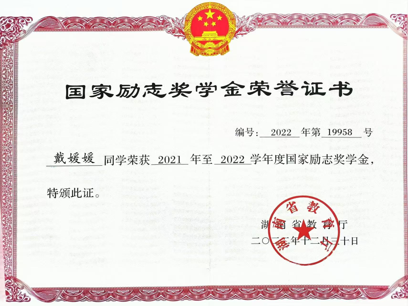 大学课堂的开放式教学,让戴媛媛深谙自主学习之重。她在独立思考中提炼知识脉络,在学科竞赛中淬炼思维锋芒。连续两学年获国家励志奖学金、斩获全国大学生英语竞赛等多项荣誉,是她深耕学问的注脚。她常说:“攀登知识高峰,需以思考为刃,劈开迷茫,方能见真章。”