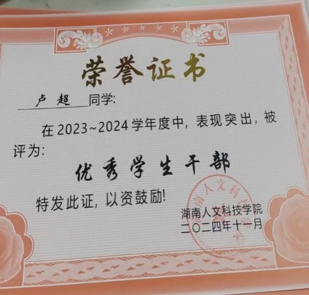 青年是社会的新鲜血液,卢超积极投身班级和学院的各项工作,连续四年担任班级团支部书记,连续两年服务学生会并担任院心理部部长。在工作中,她认真履行职责,积极组织开展各类活动,在团队协作与组织协调方面积累了丰富经验,展现出较强的领导和组织能力。在她的努力和带动下,所在班级荣获五星级优秀团支部称号。