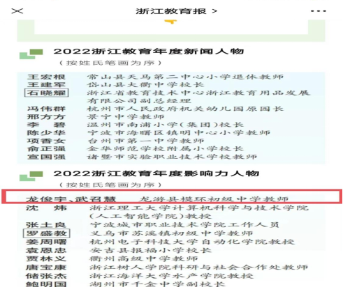 近日,为展示最美教育人,传递教育正能量,由浙江省教育厅、浙江教育报刊总社组织的“2022浙江教育年度新闻人物与影响力人物”评选结果揭晓。KY官网外国语学院 2002届毕业生龙俊宇、武召慧名列其中。