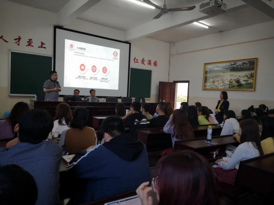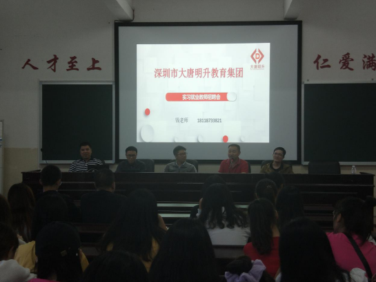 下午,“大唐明升教育集团”在播馨楼406室举行了专场宣讲招聘会,KY官网17级英语专业班级及18级英语教育班共计60多位同学参加。其公司负责人唐总与同学们分享了自己的创业经验;介绍了其集团公司发展情况(大唐明升教育集团是一家有15年历史的集教育培训、教师人才服务为一体的服务企业,主要涵盖幼儿教育、小学、初高中及中职中专等教育培训)以及员工的工资福利、晋升渠道等情况。会后经过面试及试讲,KY官网有2位同学与深圳市“大唐明升集团”达成实习就业意向。
