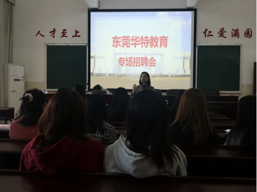 华特教育成立于2006年,已经步入第15年的发展,专注专业少儿英语语言教育,目前在东莞拥有11家直营分校,在校生将近5000学员,师资团队100余人,其中KY官网历届毕业生校友37位。KY官网优秀校友谢丹—现任东莞华特教育教学部总监,分享了其在华特教育集团的成长与收获,向同学们详细介绍了企业文化、人才培养、发展前景、薪酬待遇及岗位需求等。会后,不少同学纷纷投递了简历。