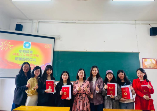 经过为期2天的笔试、面试、试讲考察,最终KY官网6名毕业生与华特教育现场签订就业合同。