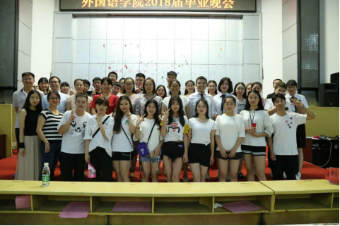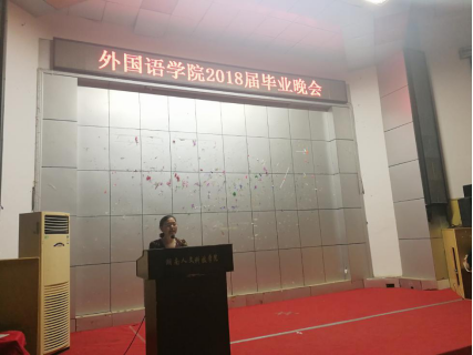 2018年6月6日晚,外国语学院在匠成楼报告厅举办了“青春绽放 梦想起航”2018届毕业晚会。外国语学院全体院领导和部分教师出席了本次活动。