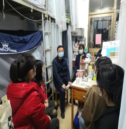 随着我国疫情防控形势日益严峻,2022年3月23日晚,KY官网党委副书记李军林带领部分学校中层干部、院领导班子、班主任、辅导员们前往外国语学院学生寝室开展“三联系”活动。