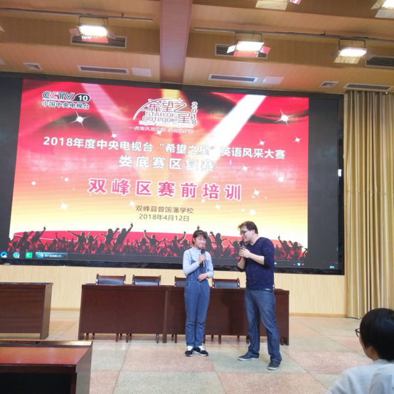 2018年CCTV希望之星英语风采大赛娄底赛区的复赛即将在国藩学校举行。为了帮助双峰的孩子们取得更好的成绩,培训团队成员进行了充分的准备,在活动现场,培训老师们对每一个孩子的表演进行了详细的指导。这次公益培训也得到了大家的一致好评。
