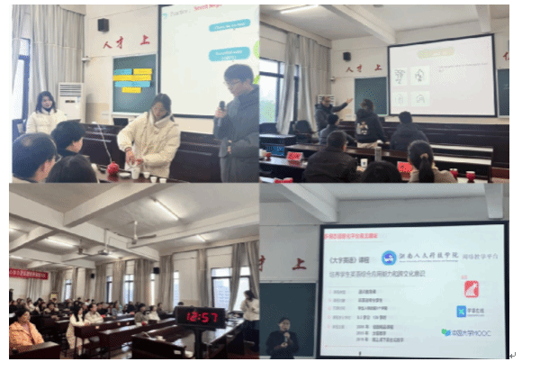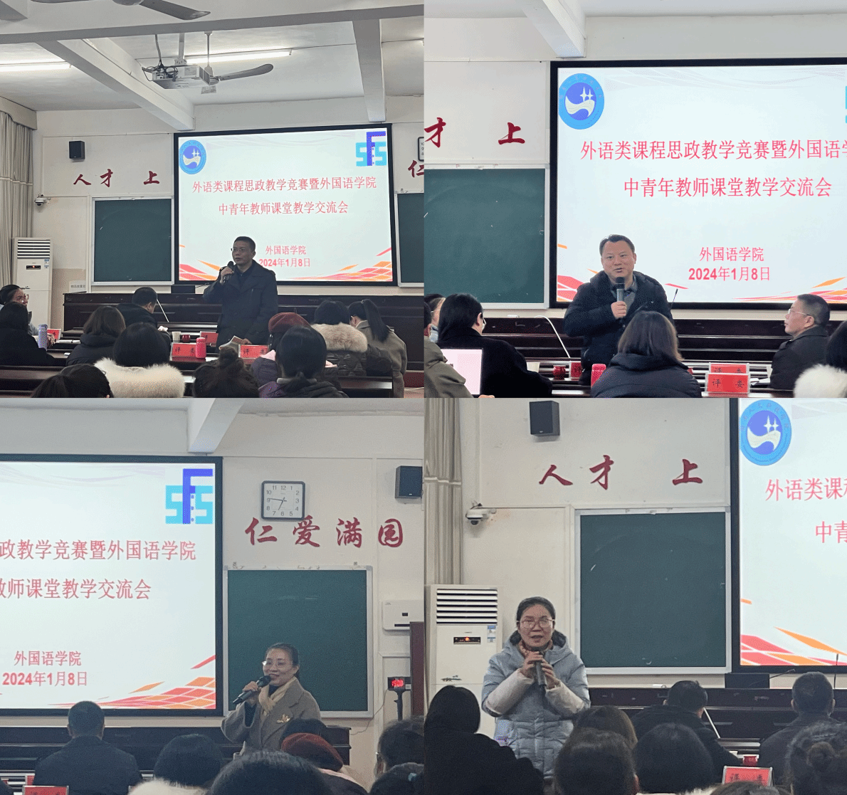 1月8日,在外国语学院播馨楼406教室举行了2024年外语类课程思政教学竞赛暨外国语学院中青年教师课堂教学交流会,本次交流会共有8位教师上台展示,老师们在15分钟的说课和讲课时间内表现出色,他们运用生动的语言、深入浅出的讲解,将知识传授给学生,激发了学生的学习兴趣和热情。老师们采用了多种教学方法,如小组讨论、情景再现等,让学生积极参与到课堂中来,提高了学生的学习效果。