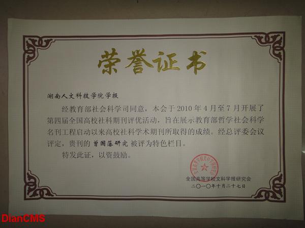 “曾国藩研究”被评为全国高校文科学报特色栏目