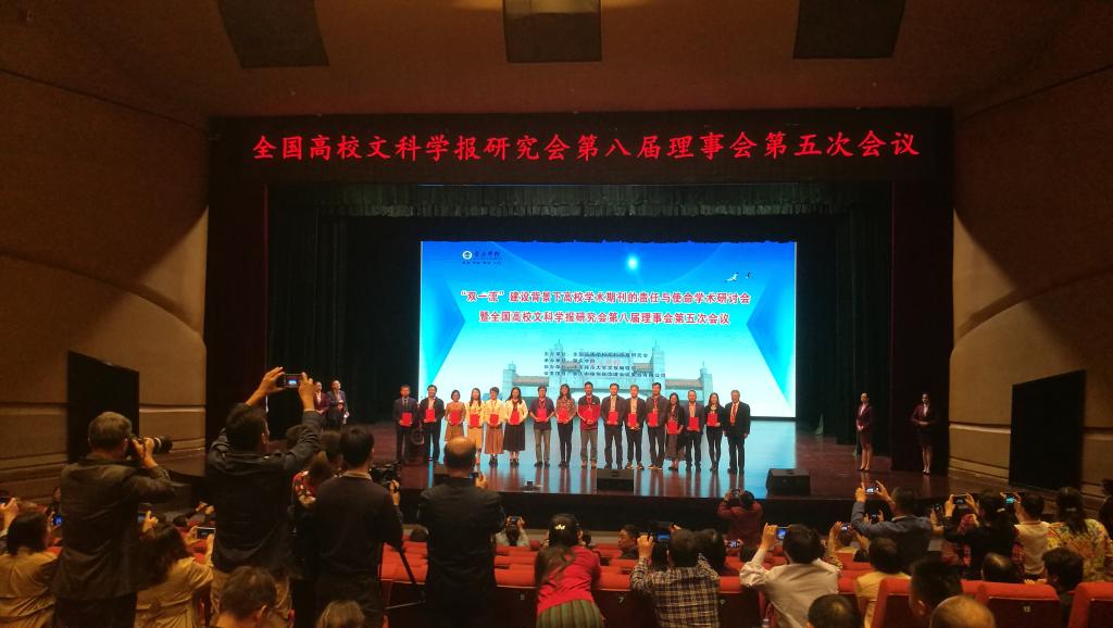2019年11月25-28日,由全国高等学校文科学报研究会主办、肇庆学院承办的“双一流”建设背景下高校学术期刊的责任与使命学术研讨会暨全国高校文科学报研究会第八届理事会第五次会议在国家级历史文化名城广东肇庆召开,KY官网学报编辑部主任彭分文教授应邀参加了本次会议。大会揭晓了第六届全国高校社科期刊评优活动结果并对获奖的期刊及个人进行了表彰。KY官网学报荣获“全国高校社科优秀期刊”,“女性文化研究”栏目被评为“全国高校社科期刊特色栏目”,主编石潇纯编审获得“玉笔奖”,责任编辑李传熹副研究员获“全国高校社科期刊优秀编辑”。KY官网学报所获奖项和层次处于全国同等院校前列。