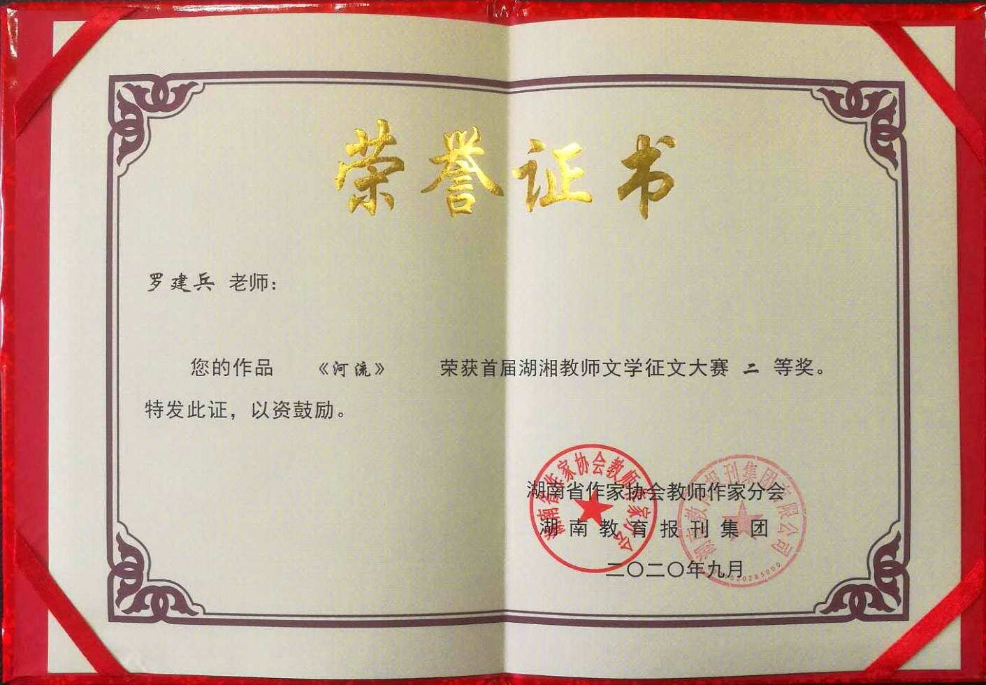 在刚刚结束的首届湖湘教师征文大赛中,KY官网学报编辑部罗建兵老师的诗歌《河流》获得二等奖。