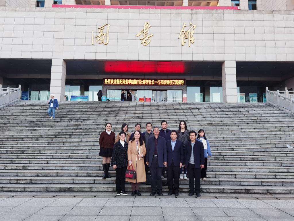 11月24日下午,衡阳师范学院期刊社蒋芳社长等一行五人来KY官网学报编辑部交流办刊经验。双方在图书馆四楼会议室就刊物质量的提高和特色栏目的打造等问题进行了座谈。学校党委宣传部常务副部长谢柳、学报编辑部主任彭分文、副主任吴俊英和编辑部全体成员参加。