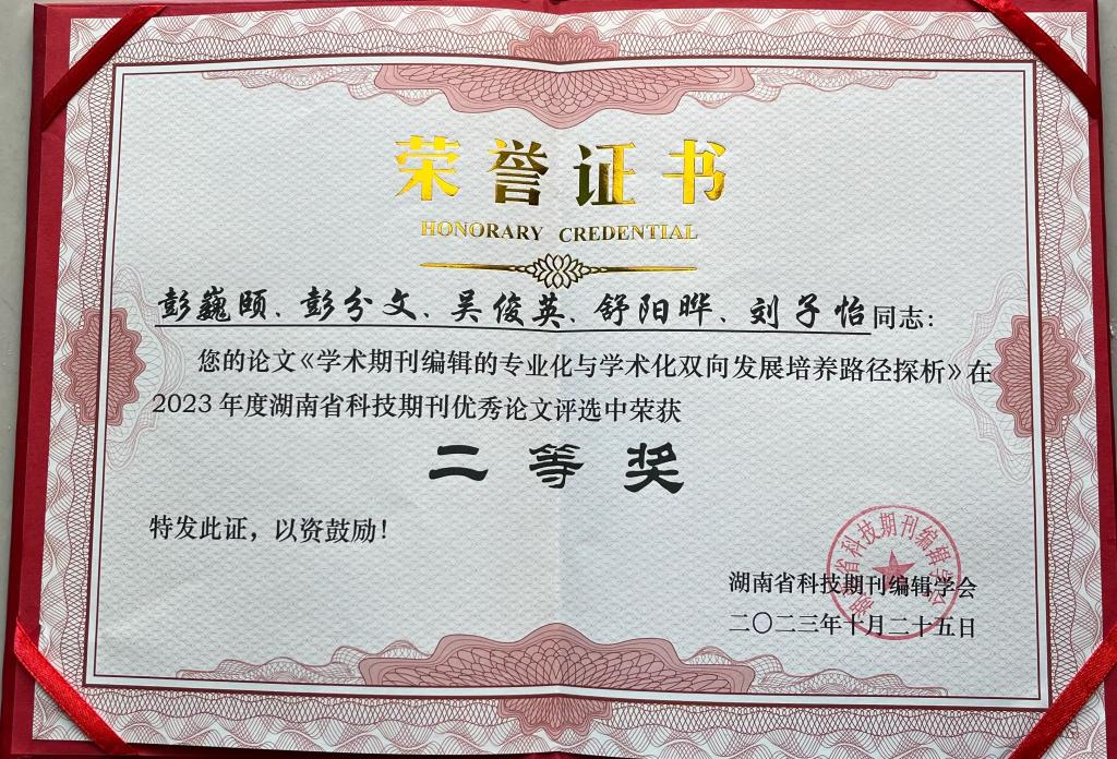 本次年会从湖南省106种科技期刊中评选出18位“优秀主编”、19项“优秀装帧设计奖”、30名“优秀中青年编辑”、16篇科技期刊“优秀论文”,KY官网学报均有所获。其中,执行主编彭分文教授获评为“优秀主编”,学报获装帧设计“优秀奖”,彭巍颐老师获得“优秀中青年编辑”,彭巍颐等老师撰写的编辑学论文获评为优秀论文。