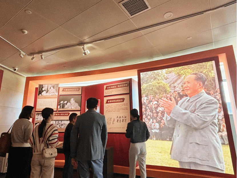 通过讲解员的细致讲解、丰富的实物陈列、翔实的图文展板以及沉浸式的数字化展示,从对具体历史事件的回顾,深入到对思想内涵的剖析,全体同志系统学习了毛泽东思想的诞生背景、形成过程、核心内涵及深远影响,深刻感悟这一伟大思想体系的独特魅力与时代价值。参观过程中,同志们不时驻足交流,结合学报编辑工作探讨如何在新时代坚守正确政治导向与学术方向。大家一致认为,学报编辑工作不仅是学术质量的把关者,更是思想文化的传播者,要将毛泽东思想等党的先进理论深度融入学报选题策划、稿件编审等工作流程之中,赋能学报高质量发展。