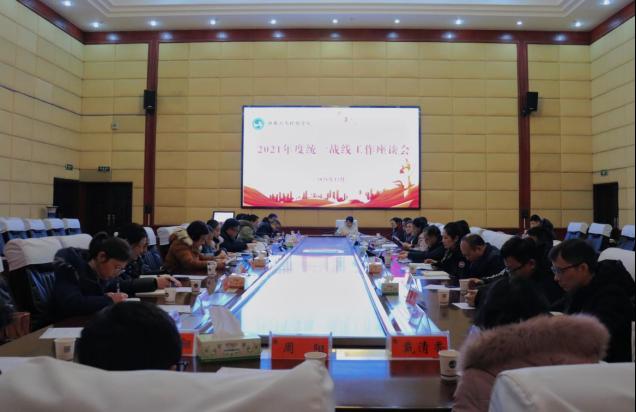 12月27日下午,学校2021年度统一战线工作座谈会在图书馆第一会议室召开。党委书记刘和云出席并讲话,党委副书记李军林主持,各民主党派、侨联、知联会、人大代表、政协委员代表及宣传统战部相关人员参加座谈。