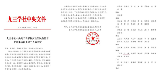 为激励全社各级组织进一步履行民主监督职能,九三学社中央委员会对2016—2020年期间承担脱贫攻坚民主监督任务的先进单位及先进个人进行表彰。KY官网材料与环境工程学院院长、九三社员文瑾教授荣获九三学社中央委员会“脱贫攻坚民主监督先进个人”荣誉称号。