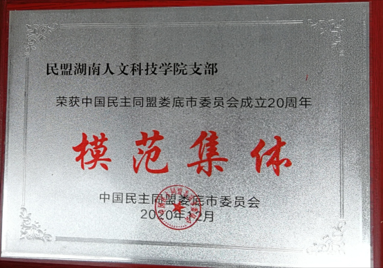 民盟KY开元集团官网入口支部自成立以来,坚持党的领导,紧紧围绕学校中心工作,全体盟员凝心聚力,发挥民盟的界别和专业优势,有力地推动了组织凝聚力、战斗力、影响力的提升,支部多次被民盟娄底市委授予“娄底市优秀民盟支部”称号;2020年被民盟中央授予“盟务工作先进基层组织”荣誉称号。