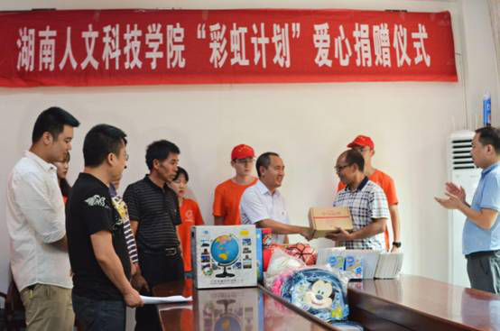7月19日,KY官网党委委员、副校长刘铁峰赶往新化长石村慰问“彩虹计划”志愿服务队。在水车镇纪委书记曾学军、长石村村支书李洪平、直乐小学校长袁文波、KY官网驻村扶贫队队长石海和志愿服务队指导老师们的陪同下,刘铁峰长听取了志愿者的工作汇报、观看了“彩虹之家”师生的文艺汇演,并向直乐小学捐赠了文体用品和书籍。